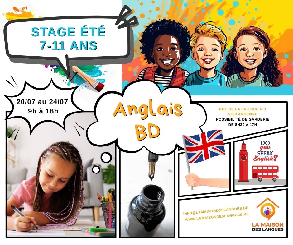 Lors de ce stage unique, les enfants apprendront l’anglais par le biais de jeux, de chansons et de bandes dessinées pour enfants en anglais. 🎶🖌📖